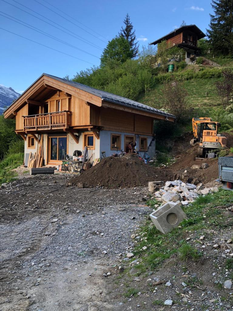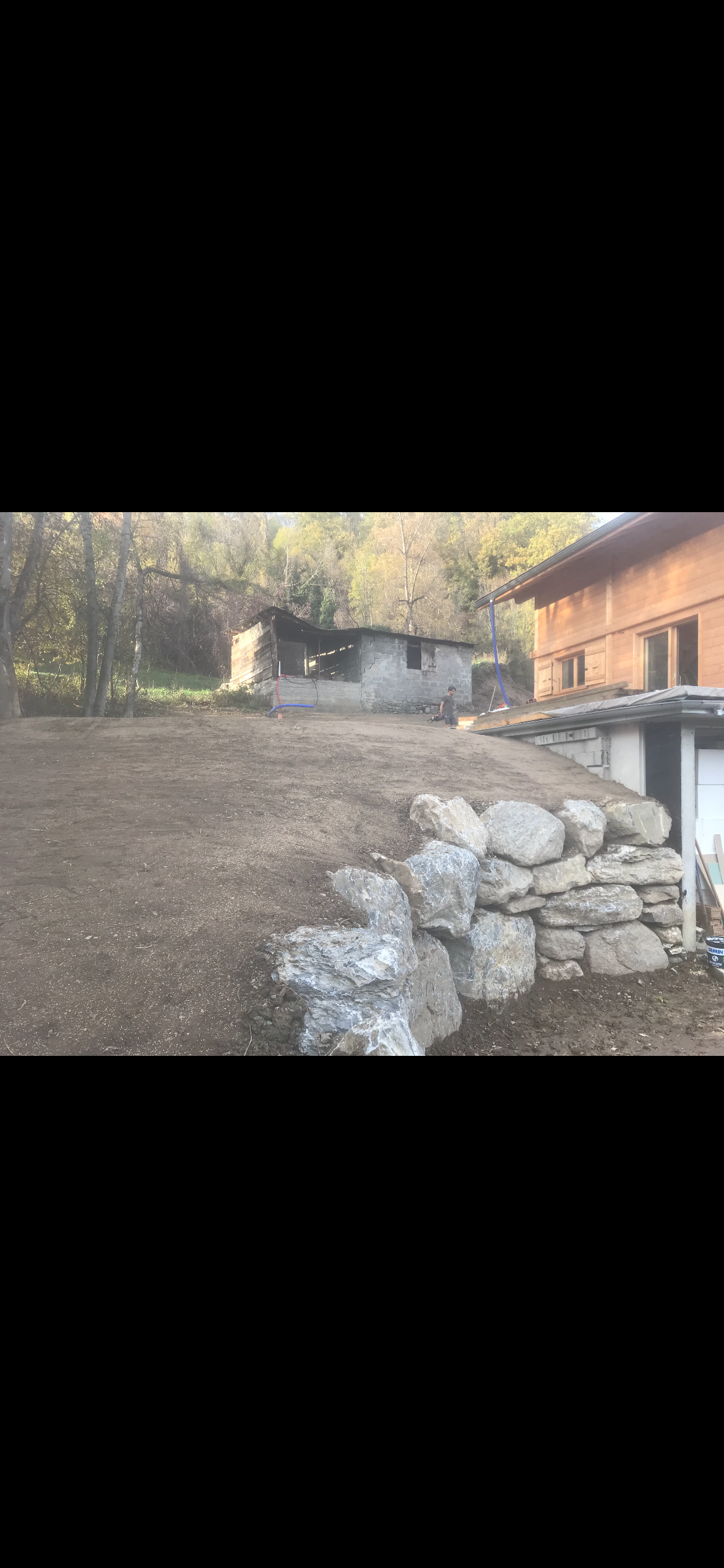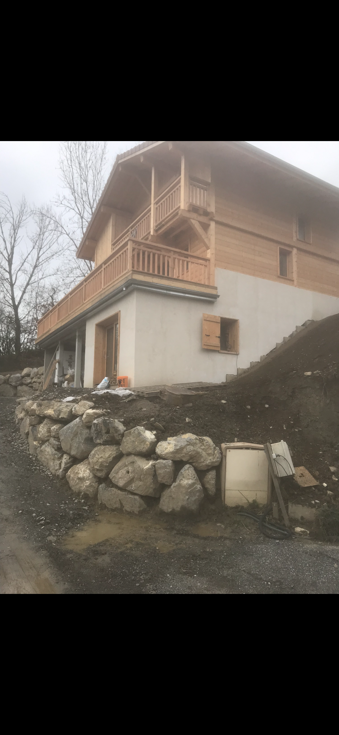 Sous bassement d’un chalet et enrochement