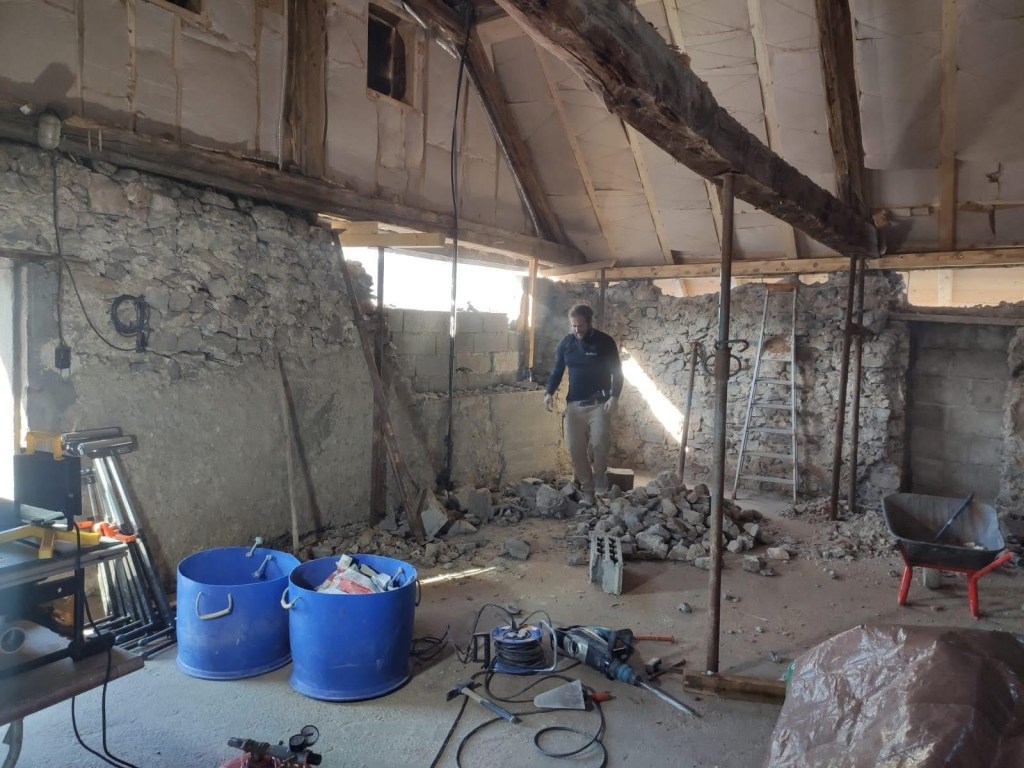 Rénovation d’une ferme. Ceinturage de la batisse et création d’ouverture.